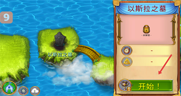1、點擊開始進入以斯拉之墓關卡,熟悉關卡開啟流程開啟探索古墓的冒險之旅。
