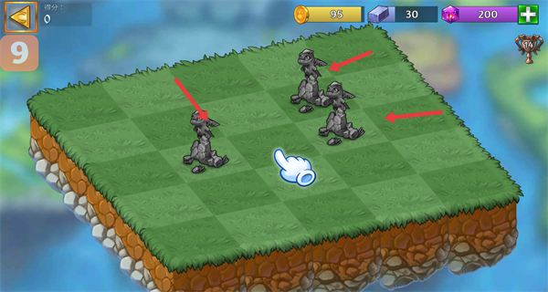 2、在關卡中觀察石像分布按指引操作,探索關卡場景為解鎖新內容和推進關卡做準備。