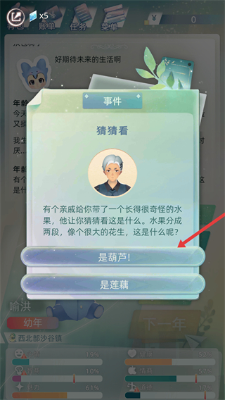 4、面對猜猜看事件選擇正確答案提升角色屬性,推進劇情增強對游戲事件的應對能力優化角色發展。