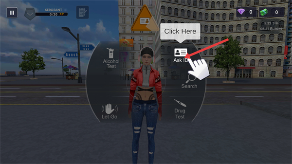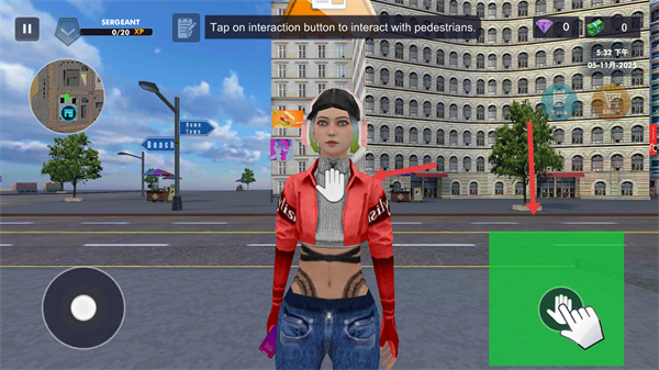 2、與行人互動點擊互動按鈕熟悉與行人的互動操作,提升警察執勤的互動能力推進游戲任務。