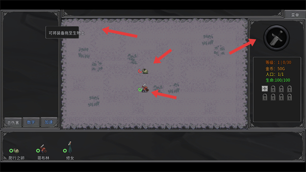 3、將裝備拖至生物上為生物配備裝備提升生物的戰力,優化戰斗配置增強生物在戰斗中的表現。
