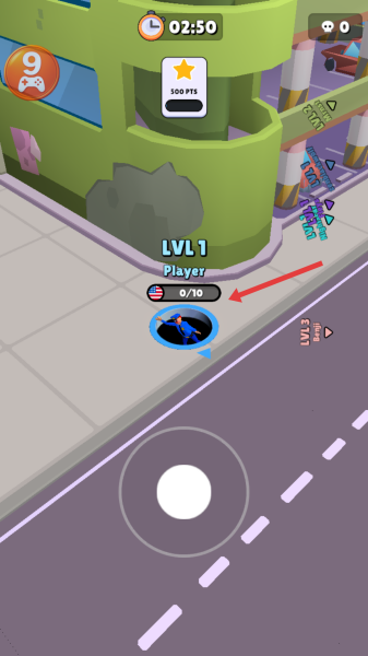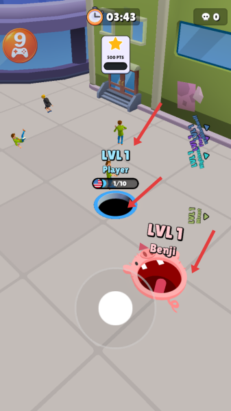 2、移動黑洞吞噬行人提升吞噬進度熟悉吞噬不同目標的操作,增強黑洞的吞噬能力推進游戲進程。