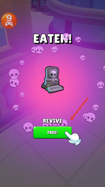 3、若被其他黑洞吞噬點擊復活按鈕繼續游戲,熟悉復活機制確保游戲的持續進行提升游戲的生存能力。