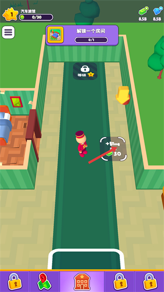 4、積累資源后,點擊解鎖房間的標識,消耗30金幣解鎖新房間,擴大旅館經營規模,承接更多客人。