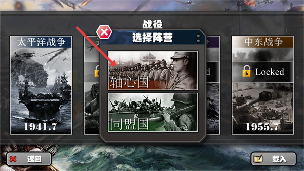 2、在戰役模式中需選擇陣營可選擇軸心國或同盟國,選擇后將進入對應陣營的戰役關卡開啟游戲征程。