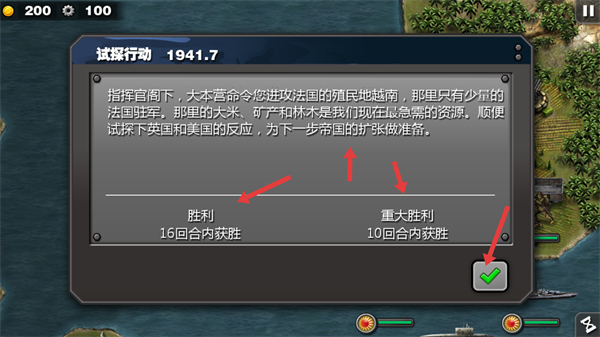 3、進入具體戰役后會顯示戰役背景和勝利條件,在規定回合內獲勝了解后點擊確認按鈕開始戰役。