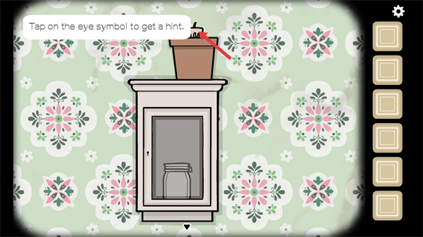 2、遇到提示Tapontheeyesymboltogetahint時,點擊眼睛圖標獲取解謎提示,助力破解場景謎題。