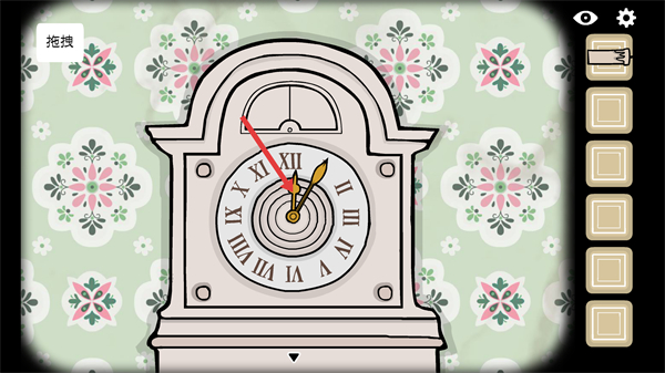 3、在時鐘場景中按照拖拽提示調整時鐘指針,通過指針位置的變化觸發解謎機關,推進游戲進程。