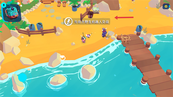 1、遇到與前方野生機器人交戰的提示時準備進入戰斗,這是獲取資源和提升實力的機會需做好戰斗準備。