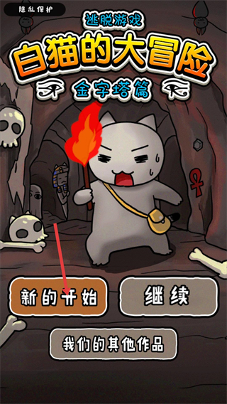 1、點擊新的開始,進入白貓的大冒險金字塔篇游戲,開啟金字塔解謎冒險。