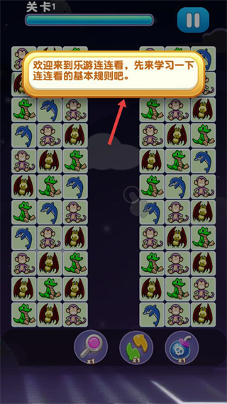 2、進入游戲后先學習連連看基本規則了解消除機制,為后續高效消除圖案、完成關卡奠定基礎。