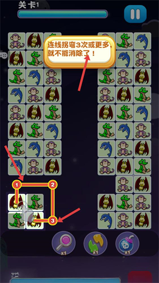 3、在連連看游戲中,注意連線拐彎次數,超過3次無法消除,需規劃連線路徑,確保順利消除圖案。