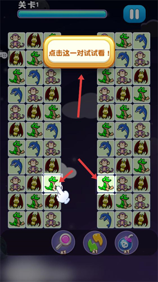 4、按照提示點擊成對的圖案嘗試消除操作熟悉消除流程,逐步掌握連連看的操作技巧推進關卡進度。