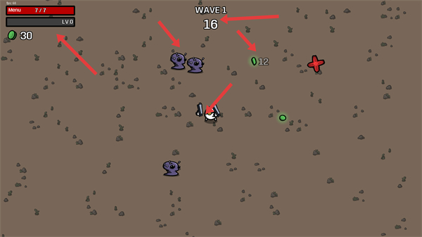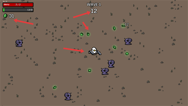 2、戰斗時繼續收集金幣和綠色方塊資源注意怪物數量變化,合理走位攻擊不斷積累資源為升級和購物做準備。