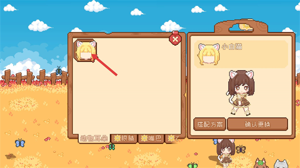2、選擇小白貓動物耳朵,點擊確認更換,打造獨特的角色形象,增強角色辨識度。
