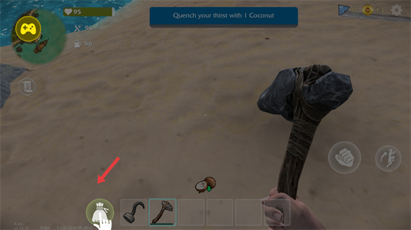 2、收集椰子后點擊左下角的背包圖標進入物品欄,準備使用椰子來解渴推進用椰子解渴的任務。