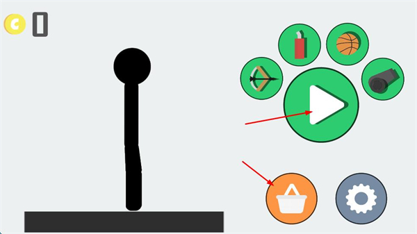 1、進入游戲界面,點綠色播放鍵開始,可在商店換武器,齒輪圖標調設置,選合適武器助力戰斗。