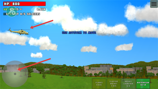 3、發現士兵后操控直升機靠近利用直升機的武器或撞擊方式攻擊士兵,同時注意躲避士兵的反擊逐步完成摧毀士兵的任務。
