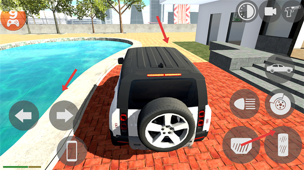 3、找到車輛后使用左側方向按鈕控制車輛移動右側的加速、剎車等按鈕輔助駕駛在場景中駕駛車輛探索完成駕駛相關任務。