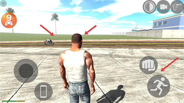 1、在場景中發現目標后利用左側搖桿控制角色移動,右側拳頭和跑步按鈕可執行攻擊與快速移動靠近目標準備發起行動。
