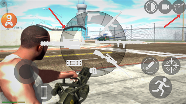 3、點擊右上角槍支圖標可打開武器選擇輪盤,從中選擇合適的武器切換后能更高效地應對不同類型的目標。