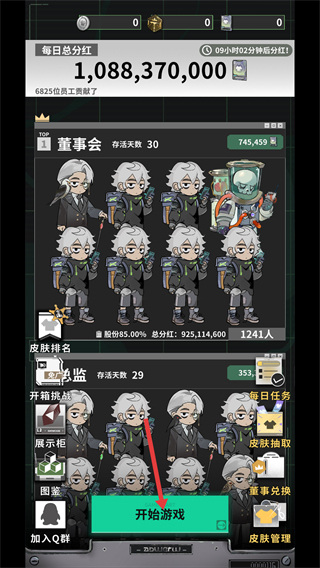 1、點擊開始游戲,進入游戲流程,開啟生存與經營的挑戰,尋找物資升職加薪。