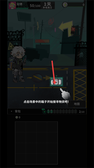 4、點擊場景中的箱子,開始搜尋物資,積累資源用于上繳、出售或提升自身生存能力,推進游戲進程。
