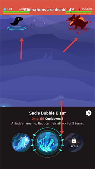 2、戰斗中使用技能SadBubbleBlast攻擊敵人可降低其攻擊力,把握技能冷卻時間持續輸出傷害。