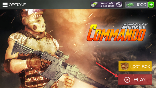 1、進入游戲后點擊紅色的PLAY按鈕開始游戲,還能開啟戰利品箱獲取獎勵。