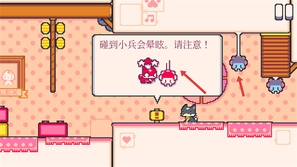 2、注意避開小兵避免暈眩,熟悉游戲中的危險提示,提升貓咪的生存能力確保冒險進程的持續。