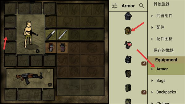 3、進入Armor分類挑選合適的護甲裝備到角色身上同時可搭配冷兵器,根據護甲屬性和戰斗場景合理選擇增強角色防護能力。