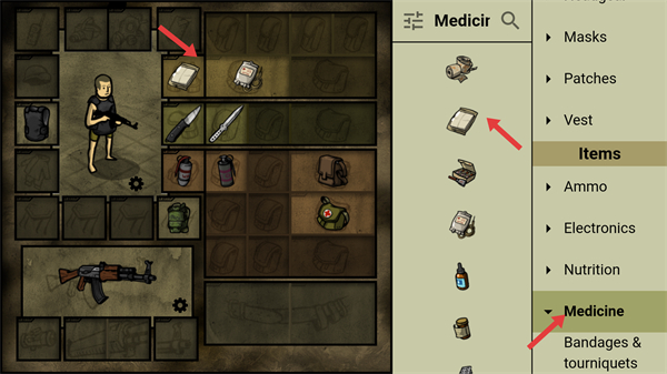 4、在Medicine分類中選擇醫療物品裝備到角色格子里,根據醫療物品的功能和數量合理配置以便在戰斗中及時恢復狀態。