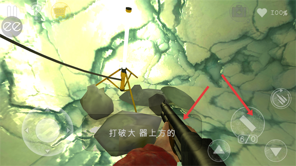 3、使用獲得的a彈槍按照提示打破大器上方的物體,注意右側射擊按鈕的使用精準射擊目標完成該階段的任務目標。
