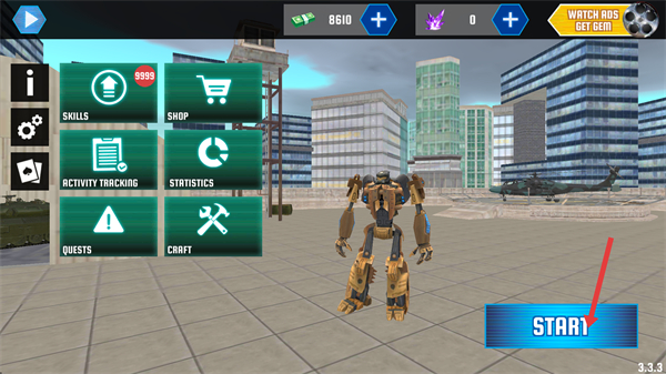 1、在游戲主界面點擊START按鈕開始游戲可先查看技能、商店等功能界面了解游戲系統為機器人冒險做好準備。