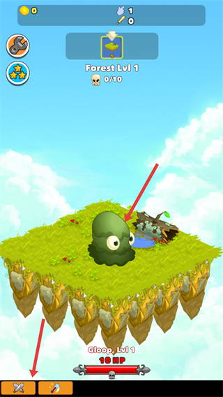 1、操控角色攻擊綠色怪物Gloop,使用左下角的攻擊技能擊敗后可獲得金幣和經驗推進游戲進程。