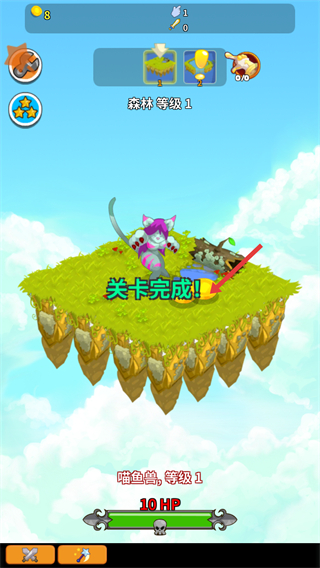 4、完成森林等級1的所有怪物擊殺后關卡完成獲得金幣獎勵,解鎖新的區域繼續探索游戲。