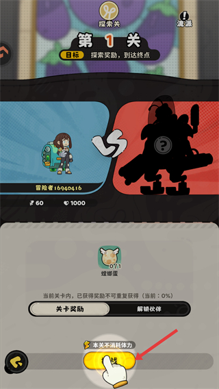 2、探索關中點擊挑戰按鈕開始冒險,目標是探索獎勵并到達終點本關不消耗體力可放心挑戰。