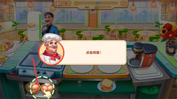 1、點擊雞蛋,準備食材,為制作餐品提供原料,確保餐品制作流程的順利進行。