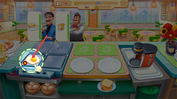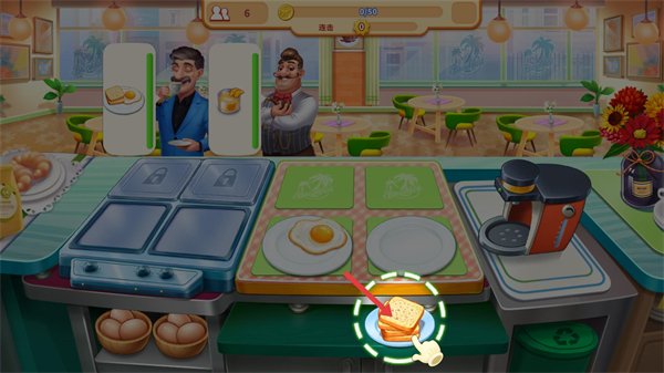 3、點擊吐司,將其與煎蛋組合,制作成完整的餐品,快速滿足顧客訂單,提高餐廳運營效率。