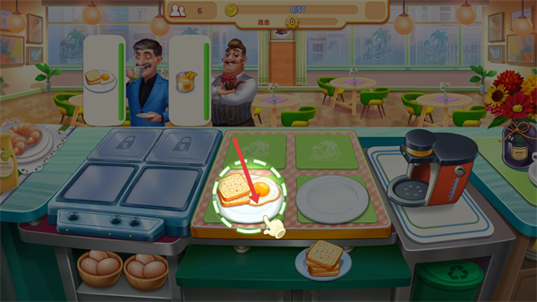 4、將制作好的吐司煎蛋餐品遞給顧客,滿足顧客的用餐需求,獲取金幣獎勵。
