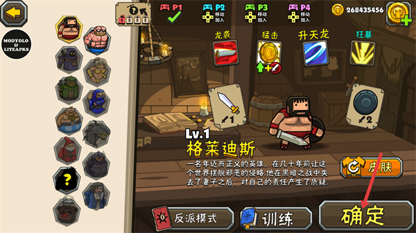 1、在角色選擇界面可挑選不同角色如格萊迪斯等,選擇后點擊確定即可開始游戲。