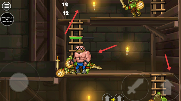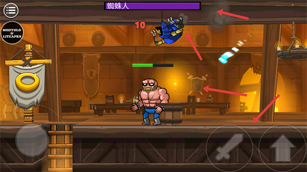 2、利用道具上下移動應對不同高度的敵人,戰斗時注意觀察敵人位置靈活走位。