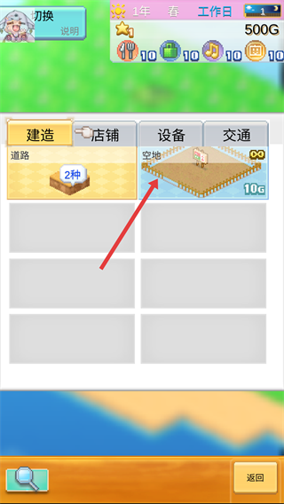 3、在建造界面里,選擇建造分類下的空地等建造元素,精心規劃都市島嶼中的建造區域。