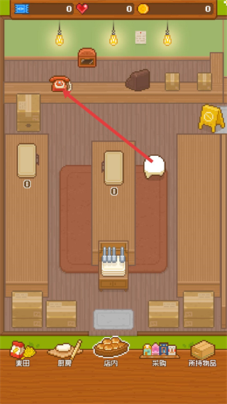 2、點擊紅色電話,接收訂單或獲取經營提示,推動面包房的業務開展,賺取錢財。
