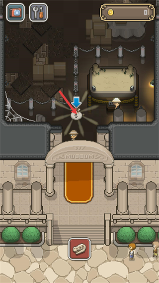 2、根據箭頭指示,點擊博物館內的金幣,擁于開展化石挖掘或修復工作,獲取新的化石展品。