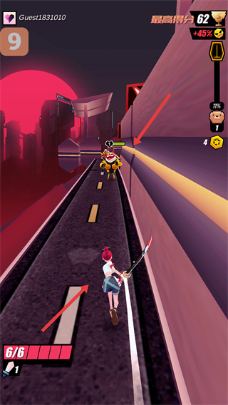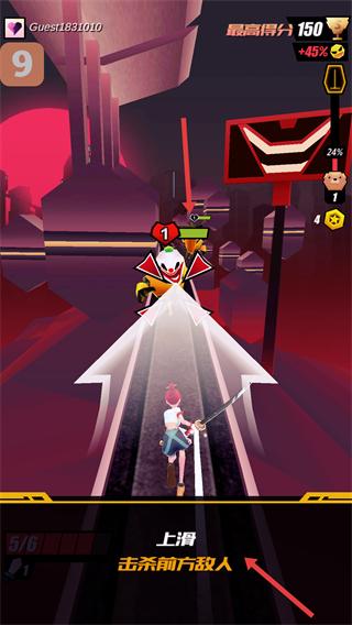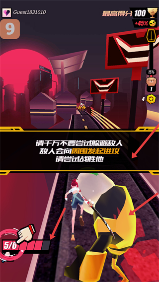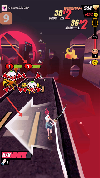 3、上滑屏幕可擊殺前方敵人利用該操作快速消滅敵人,積累得分和連擊數關注敵人出現的時機及時上滑攻擊保持游戲節奏。