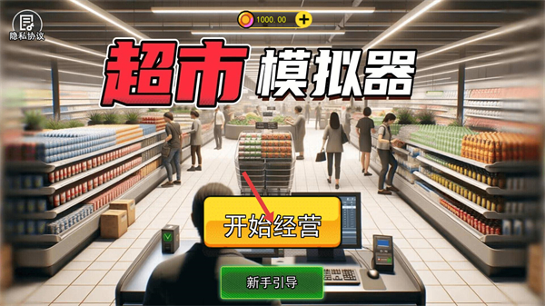 1、進入游戲后先點擊新手引導熟悉操作,再選擇開始經營開啟超市模擬,初始資源為1000,可用于后續進貨。