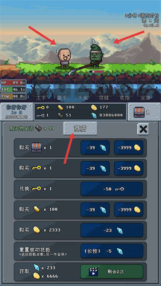 1、可在商店中購買道具、兌換資源等利用鉆石、金幣等貨幣購買所需物品如箱子、鑰匙等,還可重置被動技能合理利用商店資源能快速提升實力。
