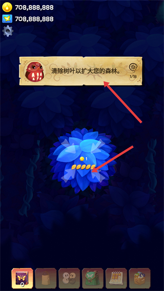 1、需清除樹葉以擴大森林點擊帶有金幣的藍色植物可進行清除操作,逐步拓展森林區域每次清除可獲得金幣同時推進游戲進度。