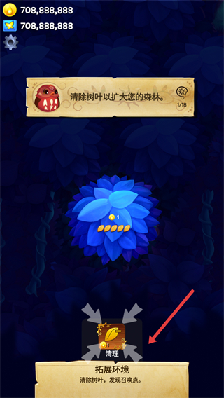2、使用清理功能拓展環境點擊清理按鈕可清除樹葉,拓展森林時會發現召喚點合理利用清理功能能快速擴大森林面積解鎖更多內容。